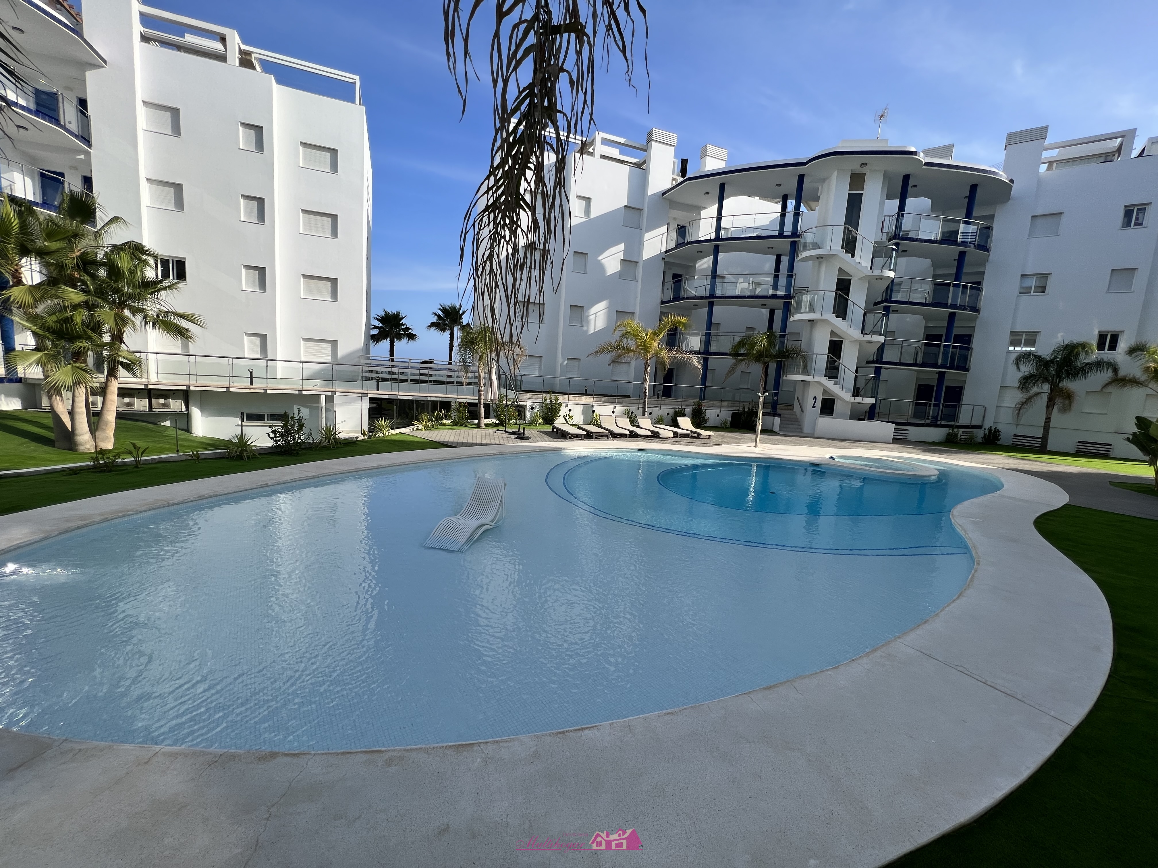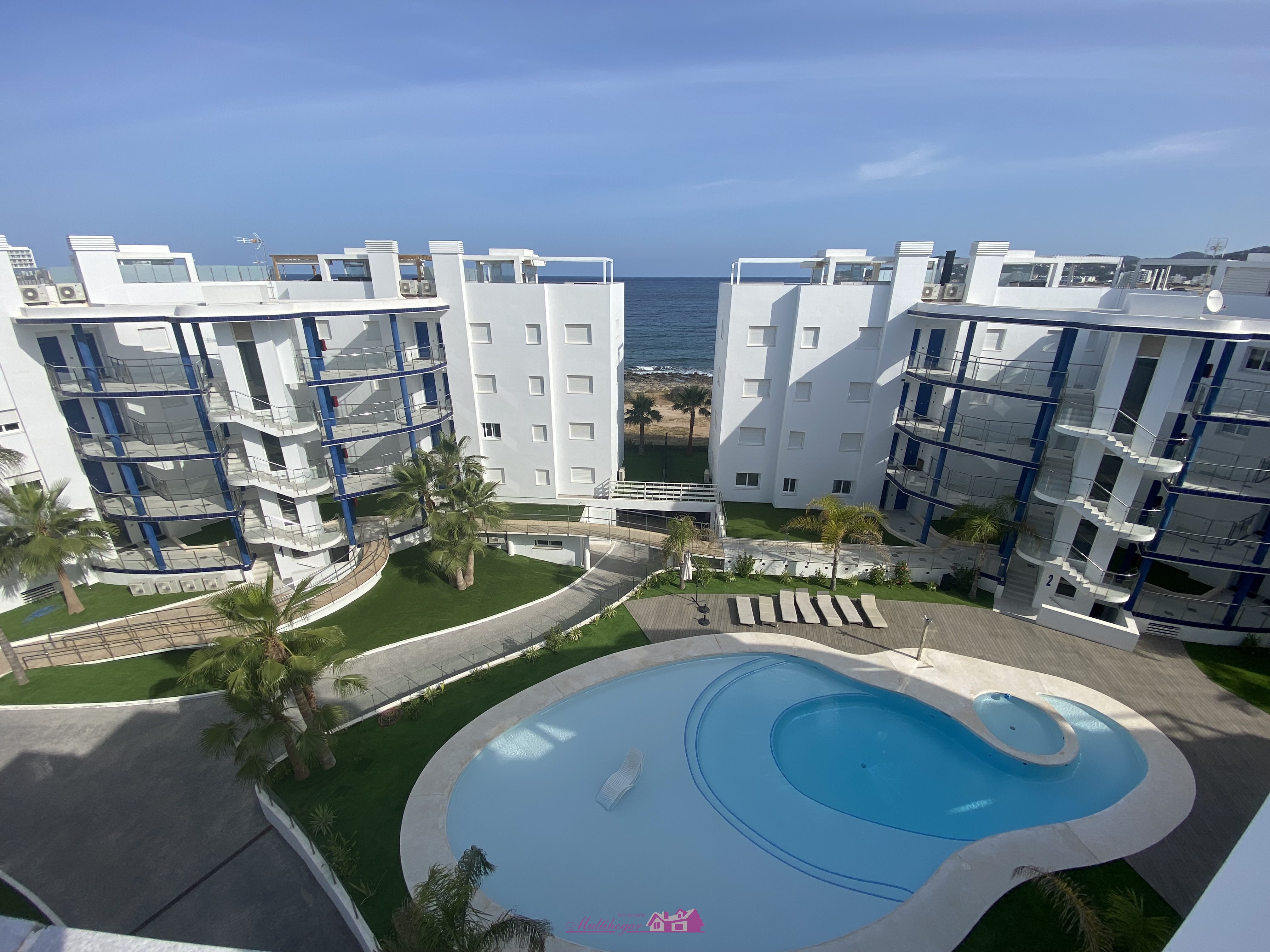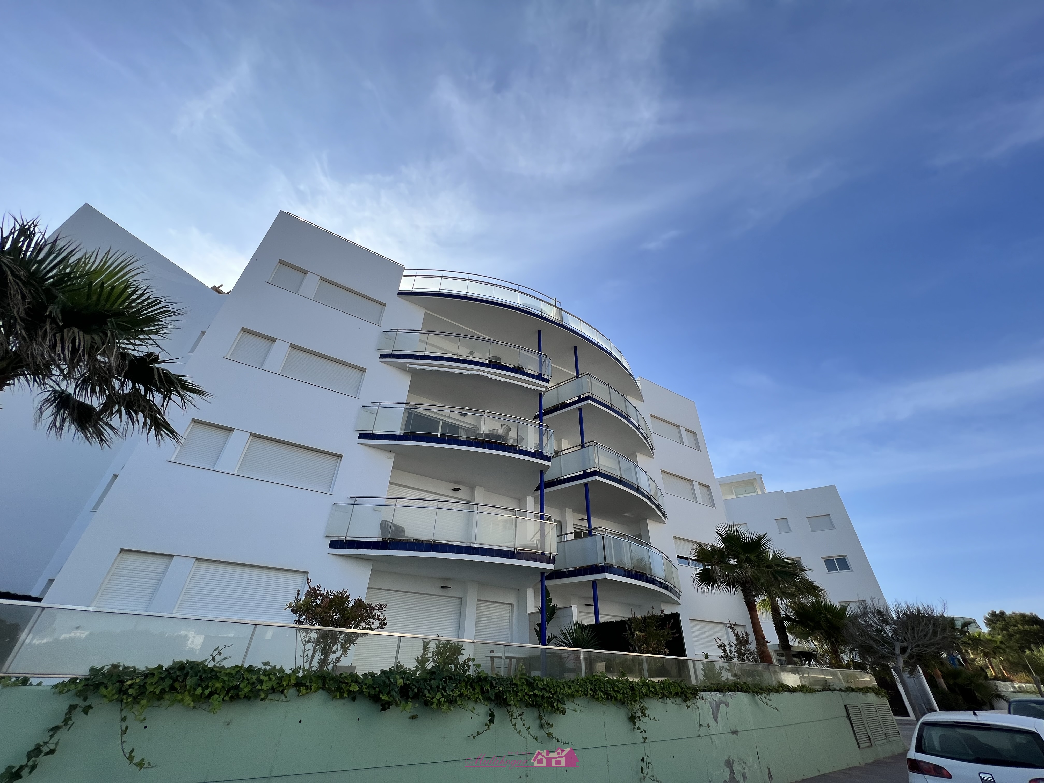Maravilloso proyecto en primerísima línea de mar de 64 viviendas de nueva construcción con espectaculares vistas al mar. 70% ya vendido. Las viviendas son de tamaño similar y distribución, desde 109 m2 a 113 m2 más sus jardines y solárium. Todos cuentan con un espacioso salón comedor, cocina abierta totalmente equipadas con electrodomésticos Bosch y equipo de osmosis, terrazas de más de 15 m², tres habitaciones con armarios empotrados, la principal en suite y con preciosas vistas al mar.