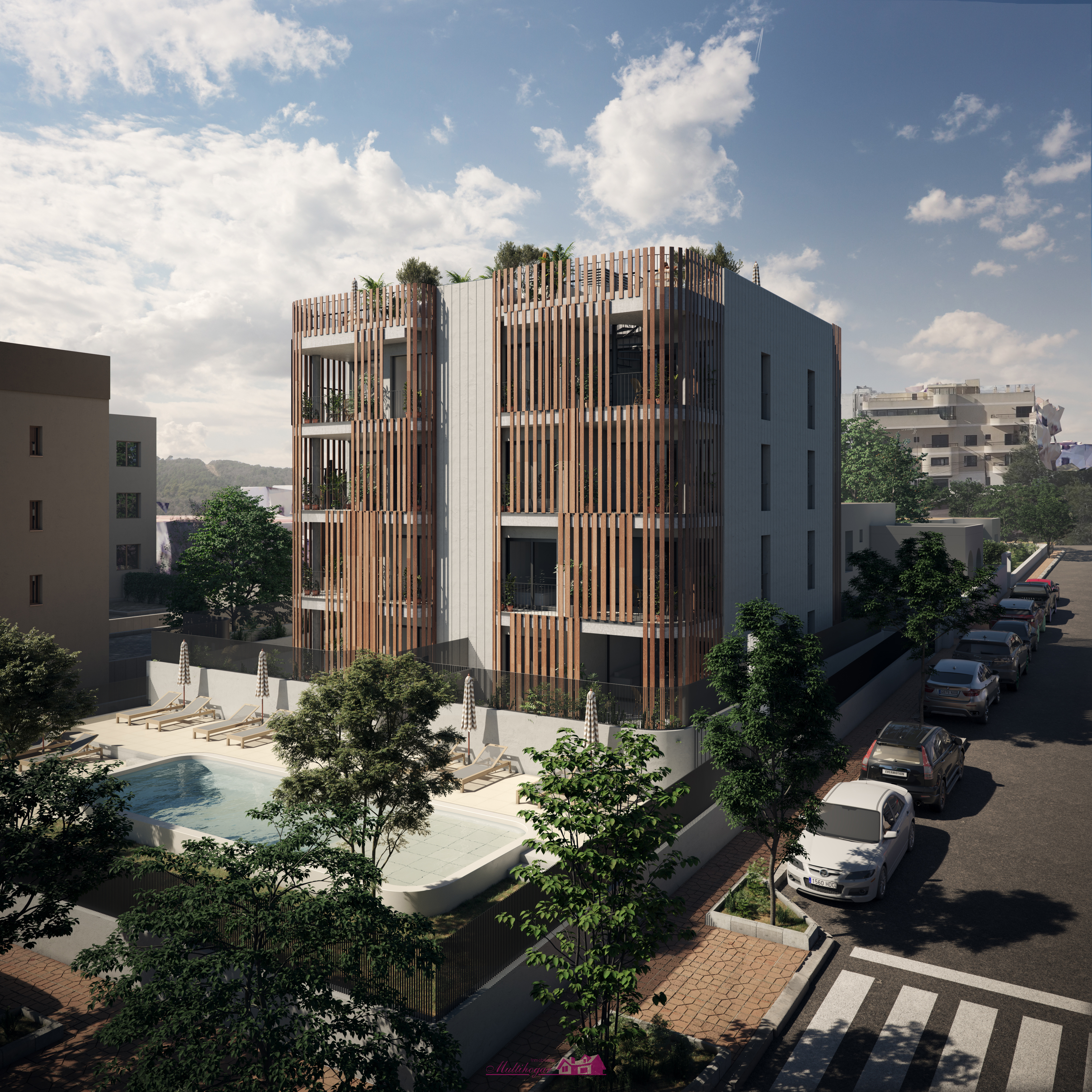 Promoción de 8 viviendas, de 3 dormitorios, divididas en bajos con jardín, planta 1º, planta 2ª y áticos con piscina privada y preciosas vistas a la puesta de sol.